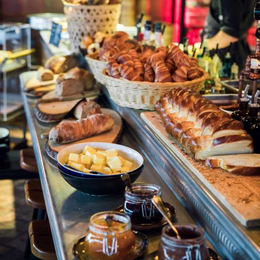 Ein gepflegter Sunday Brunch ist eigentlich nur at Rooftop wirklich das höchste der Gefühle. Hinaufschweben, hinsetzen und endlich am Sonntag einmal Sonntag haben. Die Rooftop-Crew fährt alles auf, was man sich für einen Brunch wünscht. Beste Backwaren, fluffy Eierspeisen, Aufschnitt, ein tolles Sortiment an Käse, das schönste Obst, köstliche Kuchen, Kaffees, Tees und auch als Formule avec Champagne à discrétion zu haben. Hier oben auf dem Rooftop mit Familie und Freunden den Sonntag feiern – was gibt es Herrlicheres?